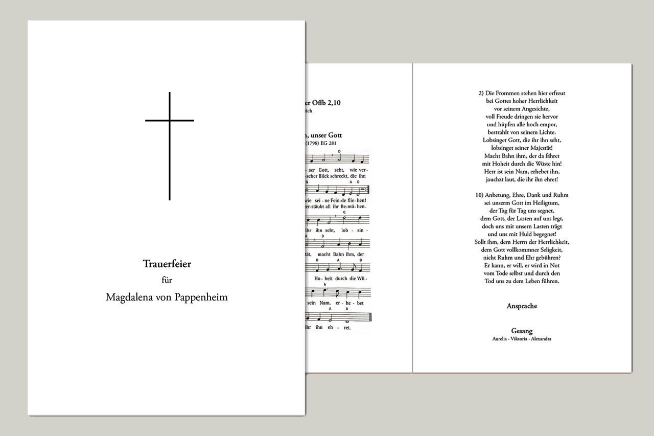 Jede Trauerkarte wird individuell von einer unserer Grafikerinnen nach Ihren Wünschen und Vorgaben für Sie und mit Ihnen gestaltet.